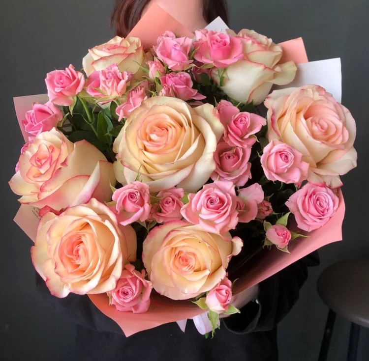 Этот букет изящно сочетает нежные кустовые и одноголовые розы, создавая атмосферу романтики и воздушности. Яркий, но при этом изысканный, этот букет станет идеальным подарком для любого случая. Упакованный в элегантную обертку, он привлечет внимание своей непринужденной красотой и свежестью. Будьте уверены, что этот букет подарит особое настроение и нежность, пробудив в сердцах воспоминания о прекрасных моментах и романтических приключениях.